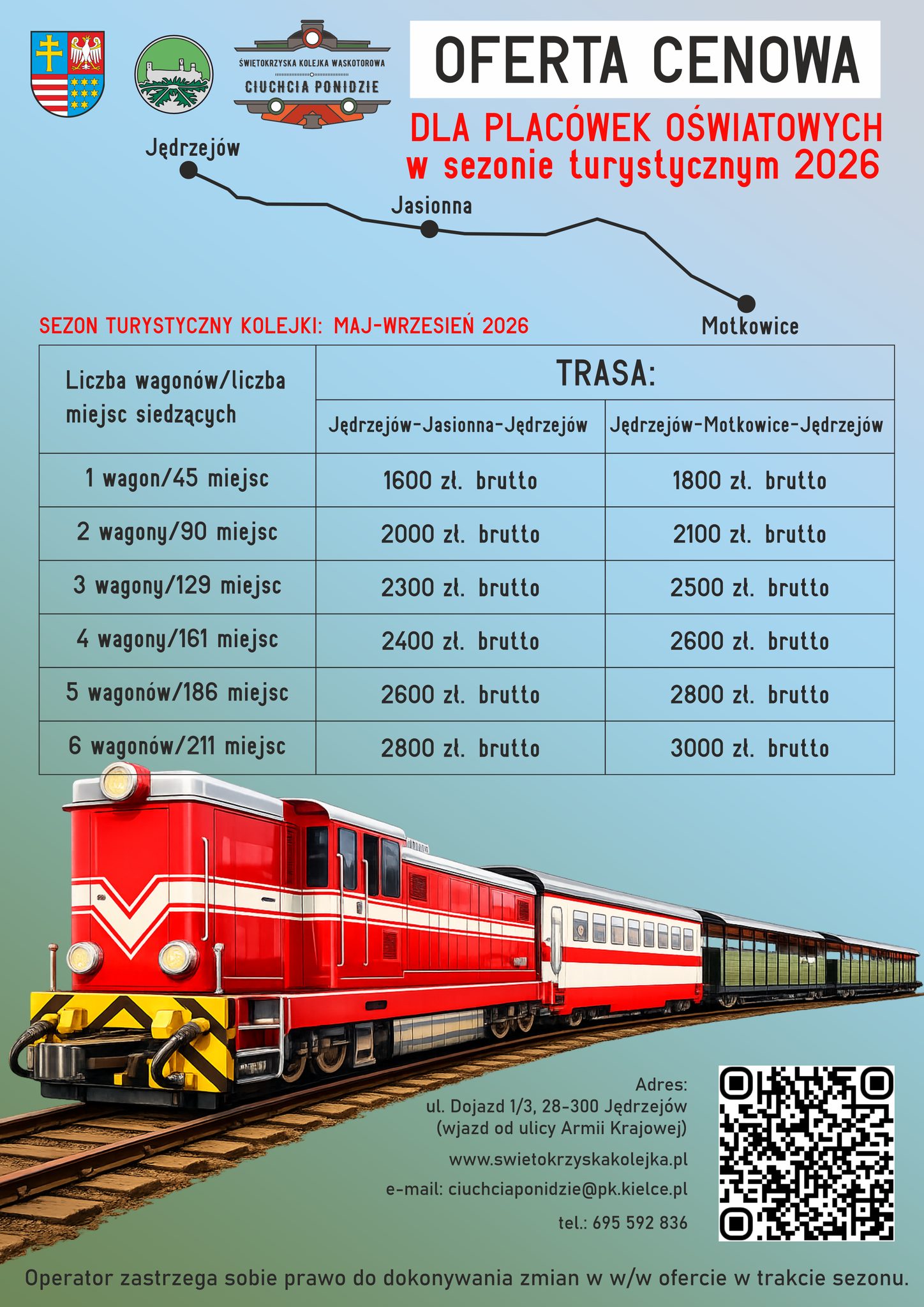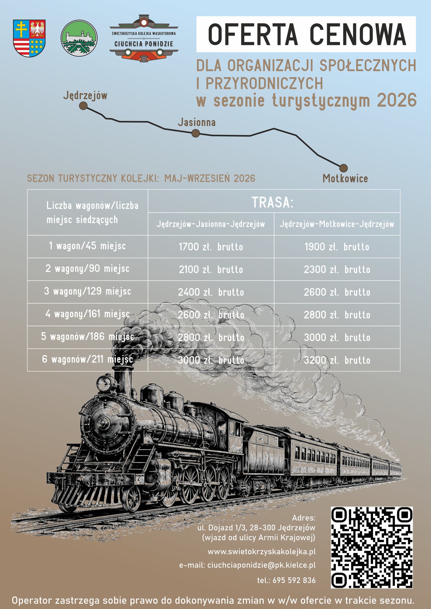 Do otwarcia sezonu "kolejkowego" pozostał jeszcze trochę czasu, ale już teraz Świętokrzyska Kolejka Wąskotorowa Ciuchcia Ponidzie opublikowała aktualny cennik dla przejazdów indywidualnych, grup niestandardowych oraz placówek oświatowych.
