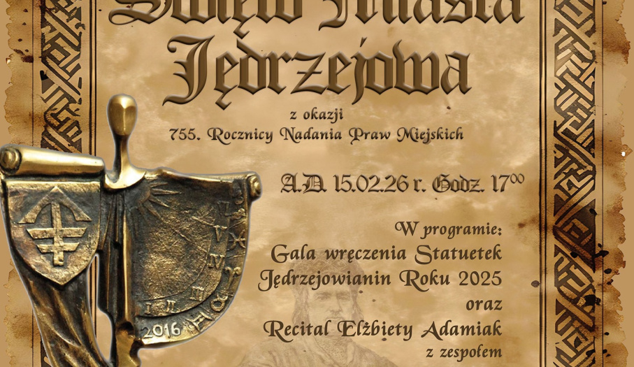 - Gala wręczenia Statuetek Jędrzejowianina Roku 2025 w trakcie której poznamy wyjątkowych mieszkańców Jędrzejowa i naszej gminy, którzy swoją działalnością i postawą zasłużyli na szczególne uznanie